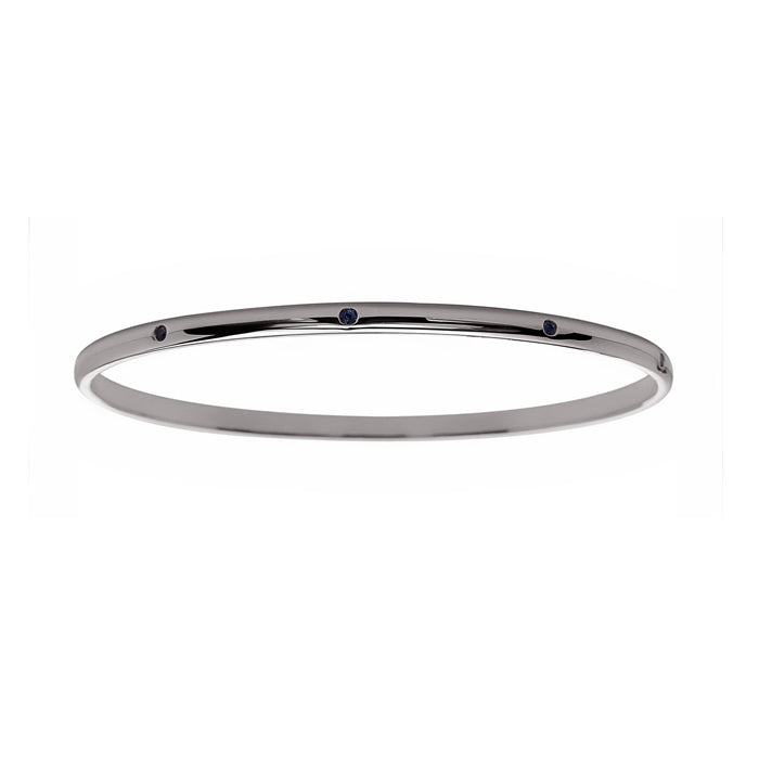 3 mm wide luxe silver bangle with black spinels. Made in New York with 100% recycled Argentium silver.