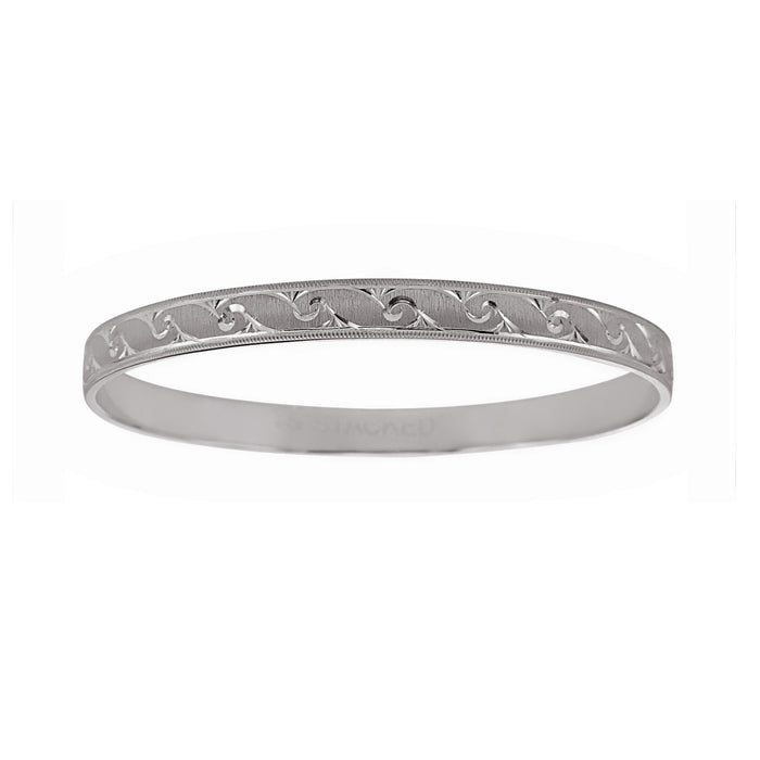 6 mm wide luxe silver bangle with high polish waves on a satin background. Made in New York with 100% recycled Argentium silver.